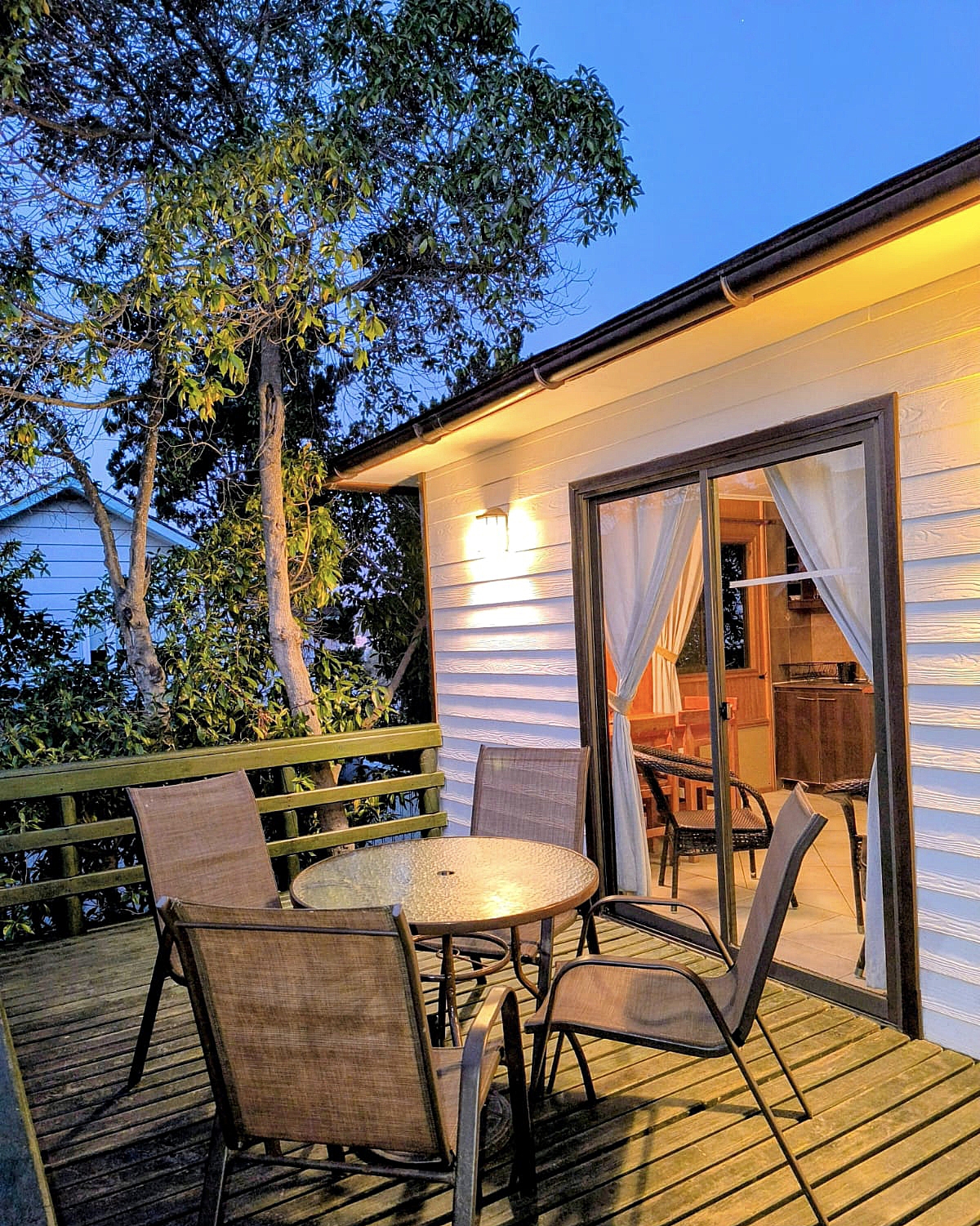 Recinto seguro y privado, Estacionamiento, Terraza vista al mar, Sala de estar, comedor, cocina americana, Dormitorio matrimonial, Segundo dormitorio 2 camarotes, Baño, Vista al Mar, Wi-Fi Fibra Óptica para cada cabaña.
